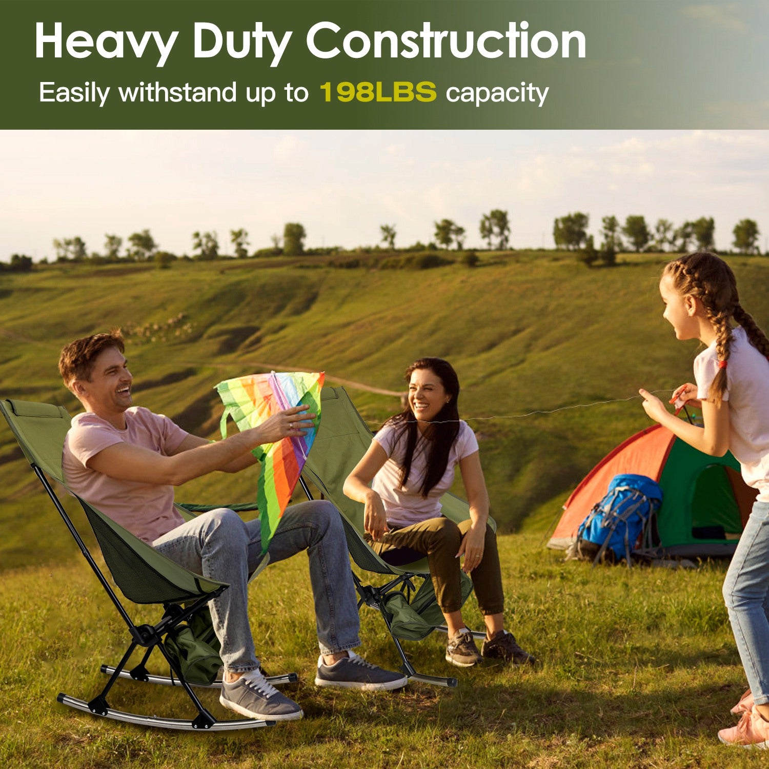 1Pc Portable Camping Rocking Chair 198LBS Weight Capacity Included Carry Bag High Back Rocker Chair For Patio Fishing Beach Lawn Travel