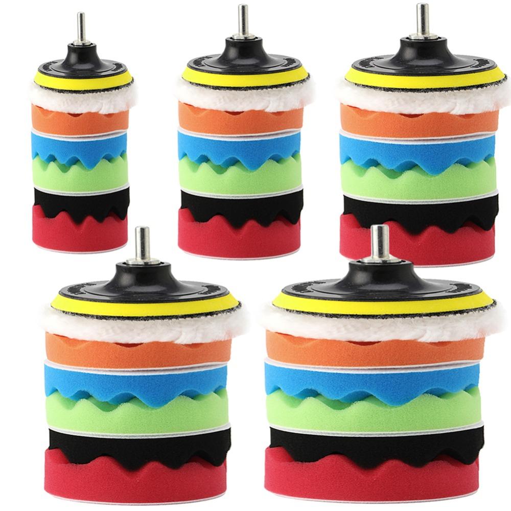 7Pcs 3/4/5/6/7'' Car Polisher Polishing Waxing Buffing Woolen&Sponge Pads Kit