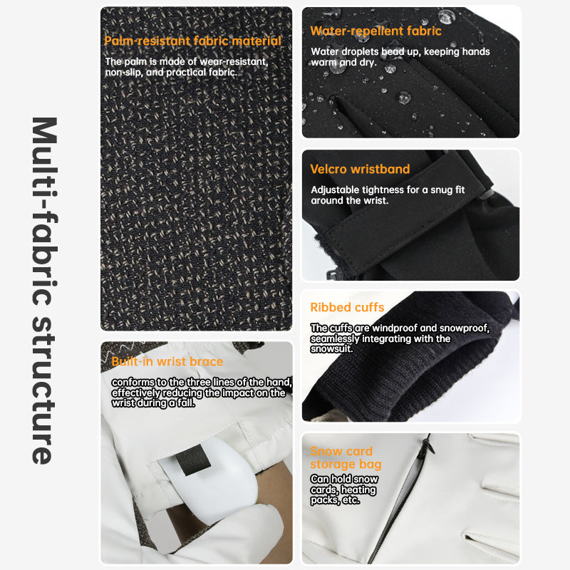 Ski Gloves with Built-in Wrist Guards, Waterproof for Ski/Snowboard Carving, Professional 3M Fleece-Lined Thickened Gloves
