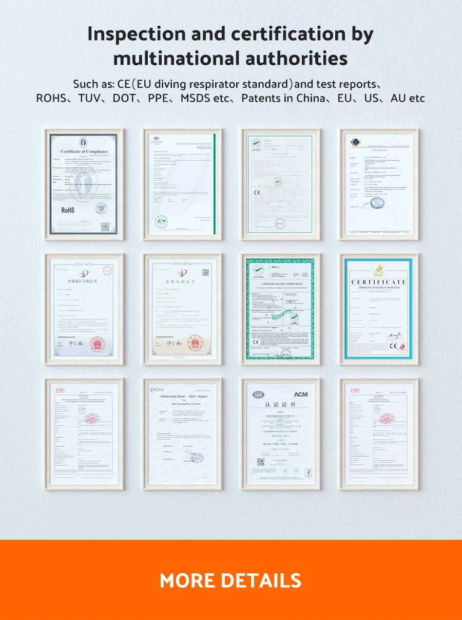 【DOT/CE Certification】Our scuba diving tanks are DOT /CE certified and comply with international standards for diving equipment. Diving bottle are easy to use and learner-friendly.Its safe depth limit is approximately 33 feet. Can be used as a backup air source for deep dives within 100 feet.You can use it for underwater exploration, boat cleaning, emergency insurance,backup air source,etc.