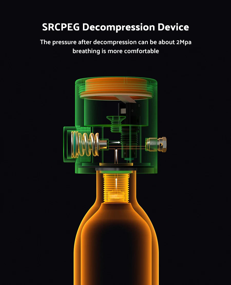 【Excellent Workmanship】TUDIVING mini diving bottle is made of 6061 aviation aluminum material, which is more resistant to seawater corrosion and has stronger damage prevention performance. The design of the fluorescent pressure gauge allows you to accurately measure the remaining gas in the bottle even in a dark environment. The three-layer filtration system effectively prevents the entry of dust and impurities, making the inhaled gas cleaner and ensuring healthier breathing.